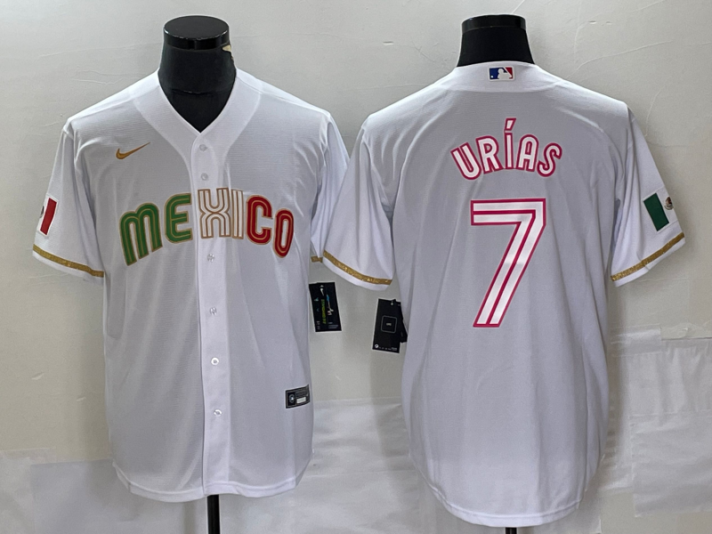 Men Mexico Baseball 7 Julio Urias White 2023 World Baseball Classic Stitched Jersey