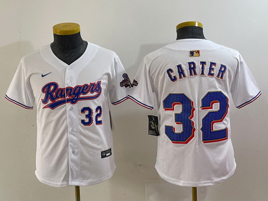 Youth Texas Rangers 32 Evan Carter White Gold Stitched Baseball Jersey