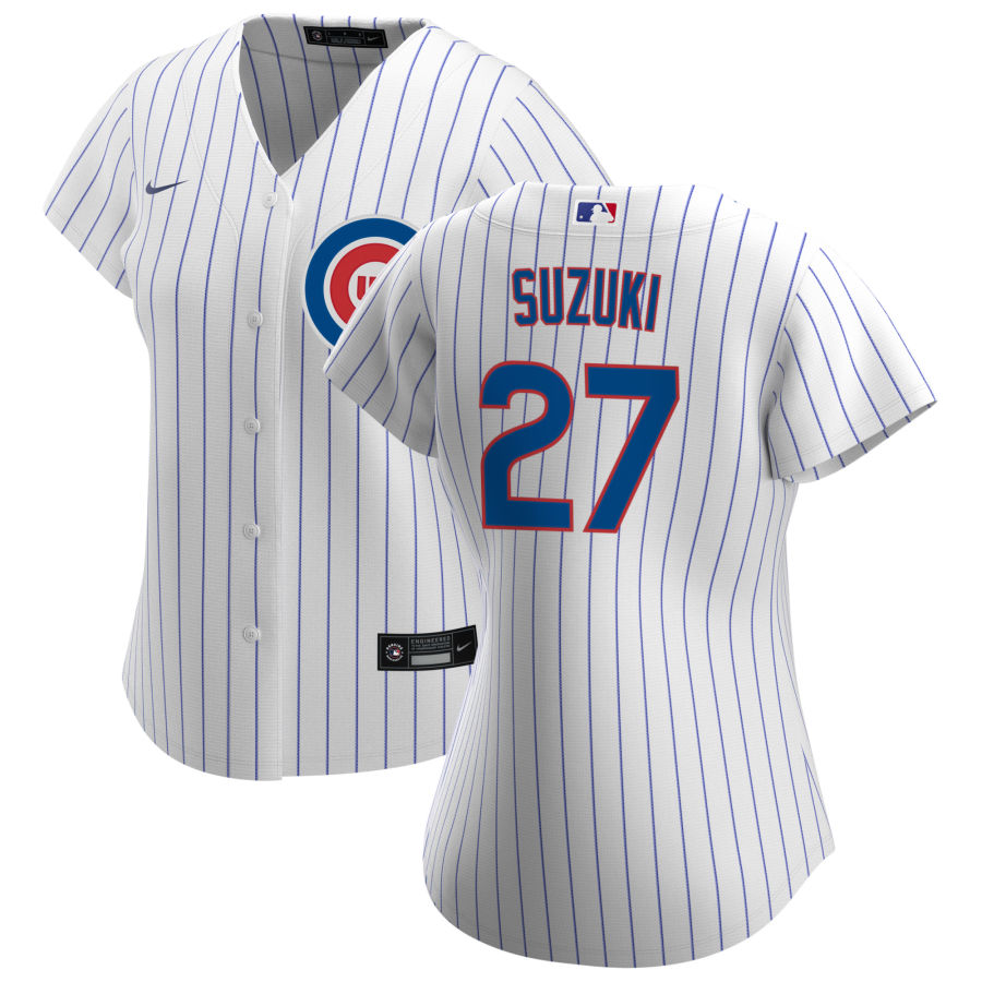 Home>MLB>Chicago Cubs>Women>Chicago Cubs 44 #27 Seiya Suzuki Nike Women Home 2020 MLB Player Jersey White