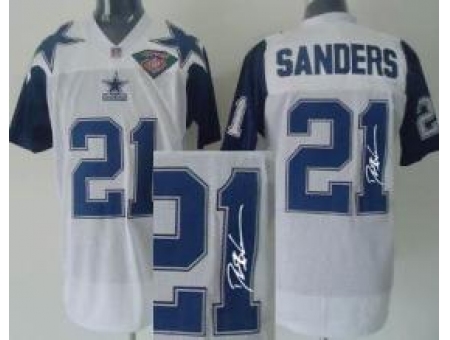 Dallas Cowboys 21 Deion Sanders White 75TH Patch Throwback M&N Signed NFL Jerseys