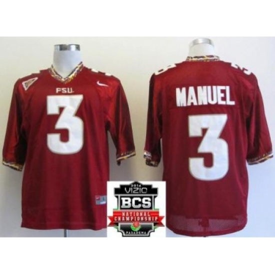 Florida State Seminoles (FSU) 3 E.J Manuel Red College Football NCAA Jersey 2014 Vizio BCS National Championship Game Patch