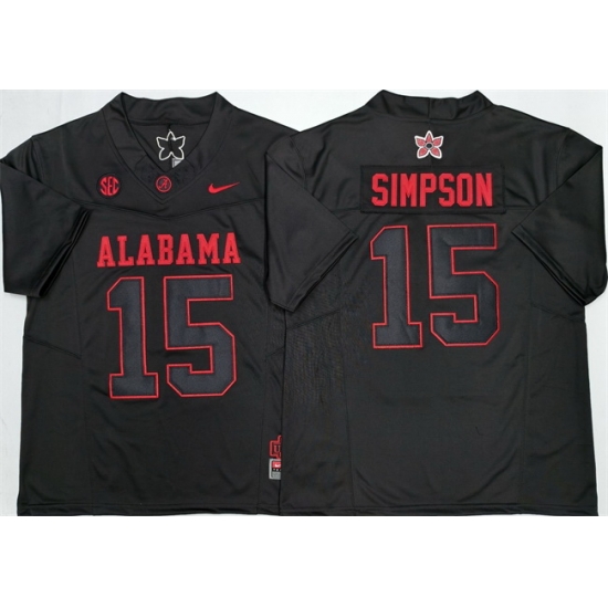 Men Alabama Crimson Tide 15 Ty Simpson Black F U S E Stitched Football Jersey