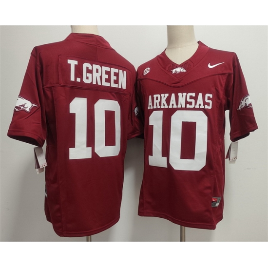 Home>NCAA>Arkansas Razorbacks>Men Arkansas Razorbacks 10 TAYLEN GREEN Red 2025 F U S E Vapor Limited Stitched Football Jersey