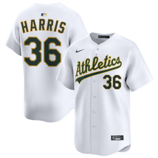 Home>MLB>Oakland Athletics>Men>Men Athletics Nike Home Limited Custom Jersey White Harris Hogan 36