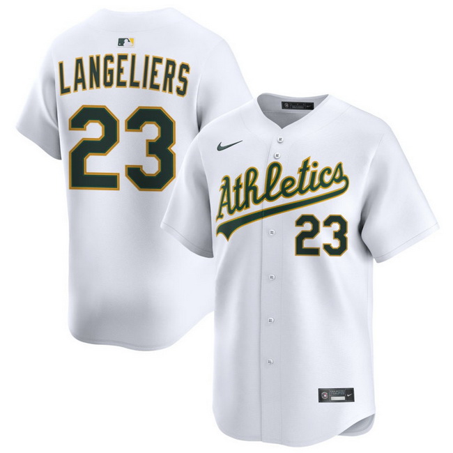 Home>MLB>Oakland Athletics>Men>Men Athletics Nike Home Limited Custom Jersey White Langeliers Shea 23