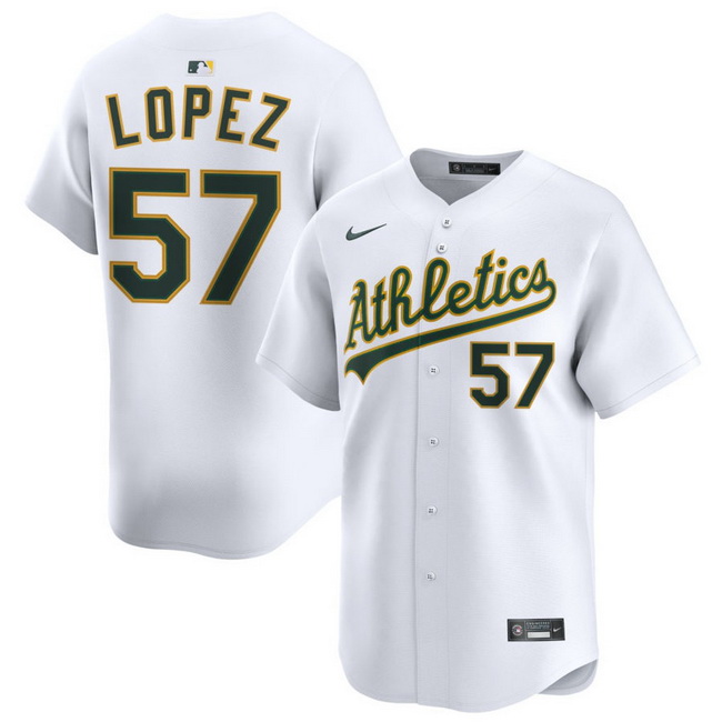 Home>MLB>Oakland Athletics>Men>Men Athletics Nike Home Limited Custom Jersey White Lopez Jacob 57
