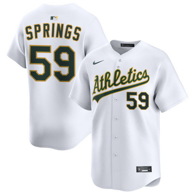 Home>MLB>Oakland Athletics>Men>Men Athletics Nike Home Limited Custom Jersey White Springs Jeffrey 59