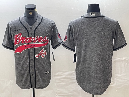 Men Atlanta Braves Gray Team Big Logo Cool Base With Patch Stitched Baseball Jersey 6