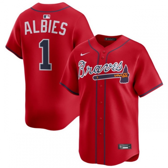 Home>MLB>Atlanta Braves>Men>Men Atlanta Braves Nike Alternate Limited Jersey Red Albies Ozzie 1