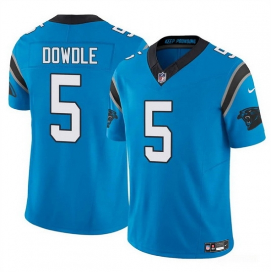 Men Carolina Panthers 5 Rico Dowdle Blue 2025 F U S E Vapor Limited Stitched Football Jersey