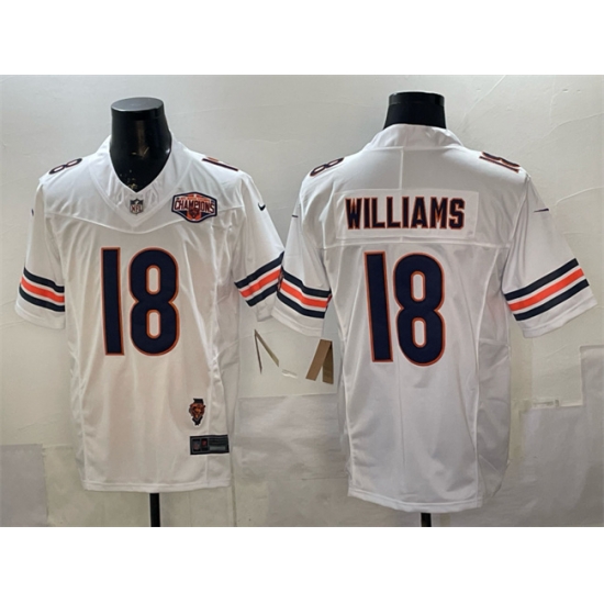 Men Chicago Bears 18 Caleb Williams White F U S E 2025 NFC North Division Champions 26 Illinois Patch Stitched Football Jersey