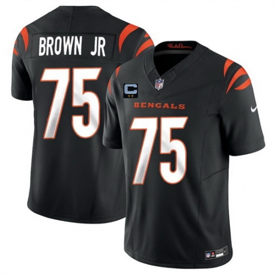 Men Cincinnati Bengals 75 Orlando Brown Jr Black 2025 F U S E With 2 Star C Patch Vapor Untouchable Limited Stitched Football Jersey