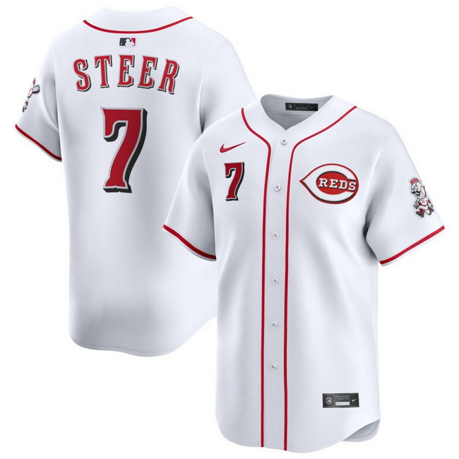Home>MLB>Cincinnati Reds>Men>Men Cincinnati Reds Nike White Home Limited Custom Jersey Steer Spencer 7
