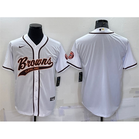Men Cleveland Browns Blank White With Patch Cool Base Stitched Baseball Jersey