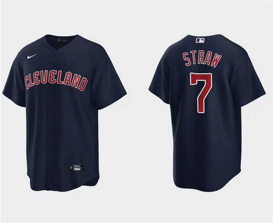Men Cleveland Guardians 7 Myles Straw Navy Cool Base Stitched Jersey