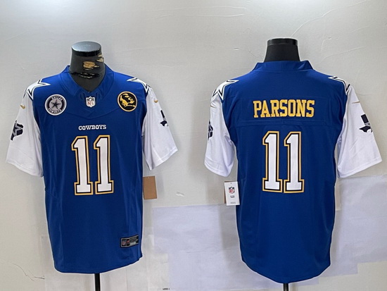 Men Dallas Cowboys 11 Micah Parsons 2024 F U S E Navy Gold With Texas 26 John Madden Patch Stitched Football Jersey 3