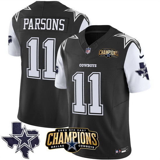 Men Dallas Cowboys 11 Micah Parsons Black White 2023 F U S E NFC East Champions Patch Stitched Football Jersey