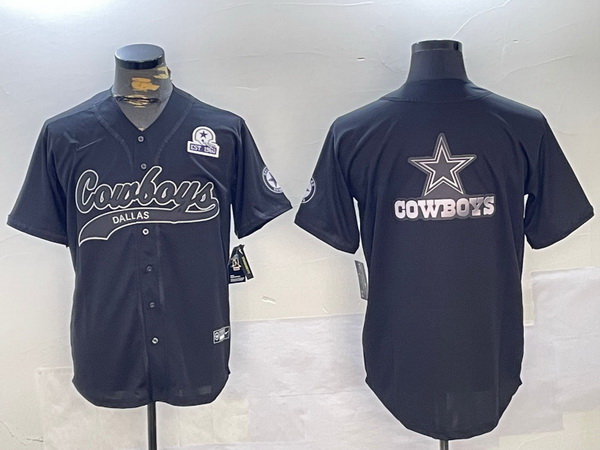 Men Dallas Cowboys Team Big Logo Black With Patch Cool Base Stitched Baseball Jersey 16