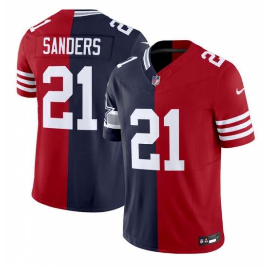 Home>NFL>Dallas Cowboys>Men>Men Dallas Cowboys X 49ers 21 Deion Sanders Navy Red Split F U S E Vapor Limited Stitched Jersey