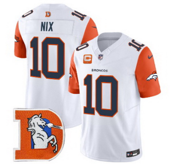 Men Denver Broncos 10 Bo Nix White Throwback Vapor Limited Navy Alternate Jersey