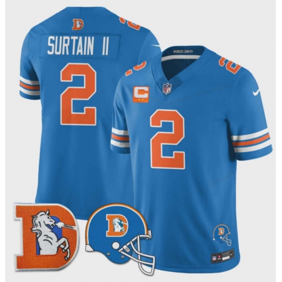 Men Denver Broncos Throwback 3 Times Champions Patch Vapor Limited All Stitched Blue #2 Patrick Surtain II Jersey