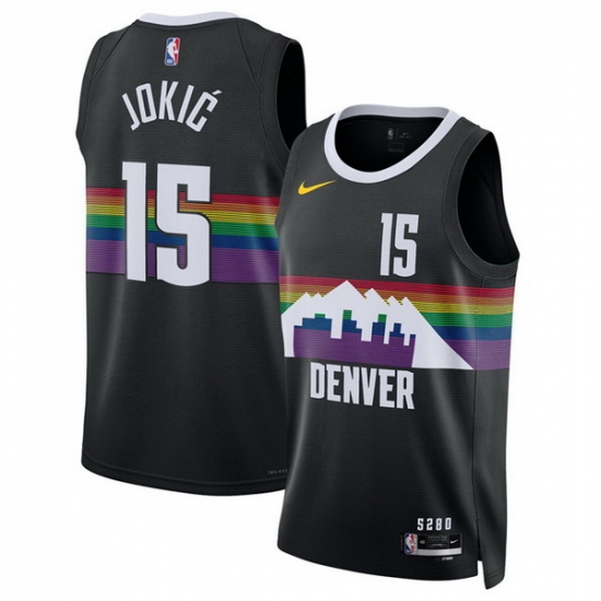 Home>NBA>Denver Nuggets>Men>Men Denver Nuggets 15 Nikola Joki u0107 Black 2025 26 City Edition Stitched Basketball Jersey