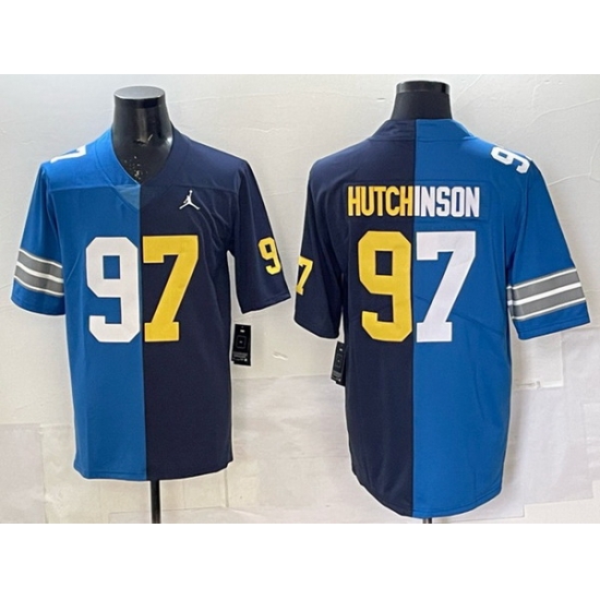 Home>NFL>Detroit Lions>Men>Men Detroit Lions X Wolverines 97 Aidan Hutchinson Blue Navy Split Vapor Limited Stitched Jersey