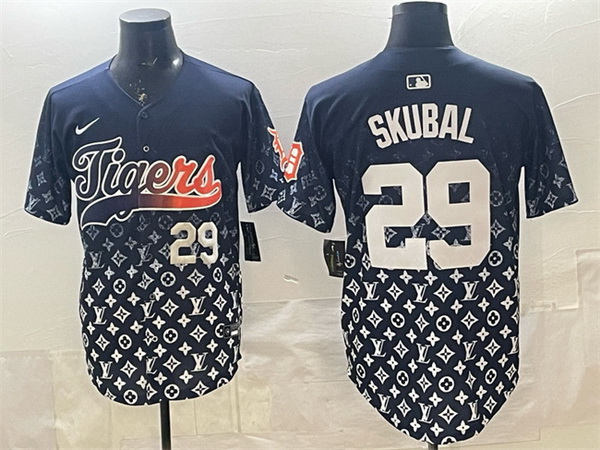 Home>MLB>Detroit Tigers>Men>Men Detroit Tigers 29 Tarik Skubal Navy With Patch Vapor Premier Limited Stitched Baseball Jersey