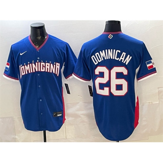 Men Dominican Republic Baseball 26 Dominican Royal 2026 World Baseball Classic Road Stadium Stitched Jersey