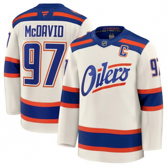 Men Edmonton Oilers 97 Connor McDavid Light Beige Alternate With C Patch Stitched Hockey Jersey