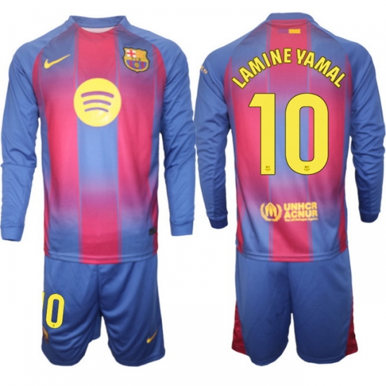 Men FC Barcelona 2026 Soccer Jerseys Red Long #10 LAMINE YAMAL