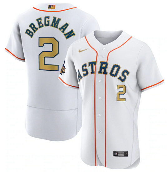 Home>MLB>Houston Astros>Men>Men Houston Astros 2 Alex Bregman White 2023 Gold Collection With World Serise Champions Patch Stitched Baseball Jersey