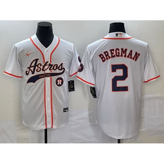 Men Houston Astros 2 Alex Bregman White With Patch Cool Base Stitched Baseball Jersey