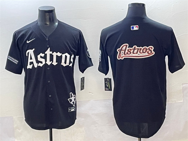 Home>MLB>Houston Astros>Men>Men Houston Astros Team Big Logo Black Gothic 27Houston Born Barrio Raised 27 Limited Stitched Baseball Jersey 2