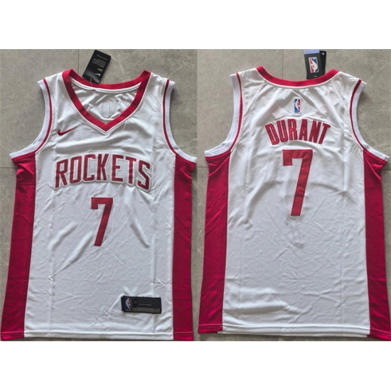 >Men Houston Rockets 7 Kevin Durant White 2025 Association Edition Stitched Jersey