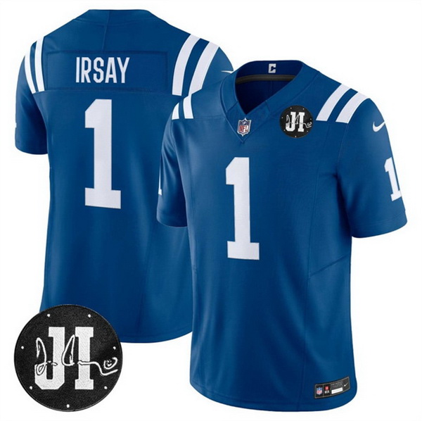 Men Indianapolis Colts 1 Jim Irsay Blue 2025 F U S E Jim Irsay Patch Vapor Limited Stitched Football Jersey