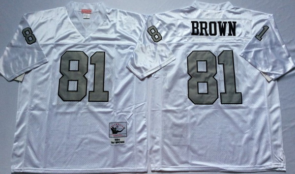 Men Las Vegas Raiders 81 Tim Brown White Silver M&N Throwback Jersey
