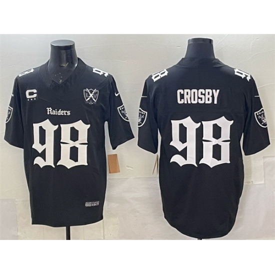 >Men Las Vegas Raiders 98 Maxx Crosby Black F U S E Gothic Sin City Shadows Edition With 65th Anniversary 3 Star C Patch Vapor Untouchable Limited Stitche