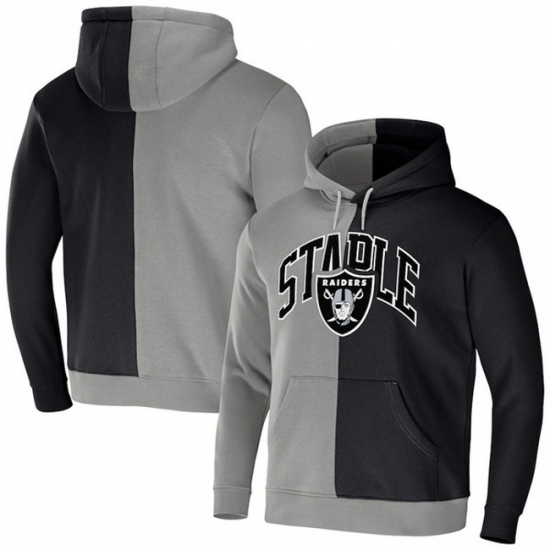 Men Las Vegas Raiders Black Grey Split Logo Pullover Hoodie