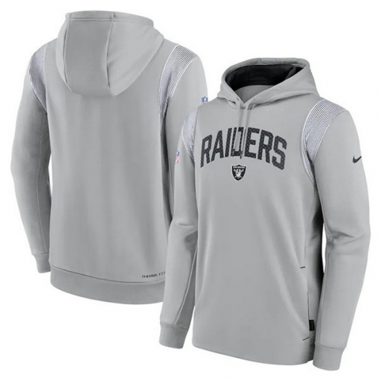 Home>Men Las Vegas Raiders Grey Sideline Stack Performance Pullover Hoodie 001