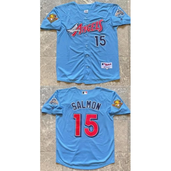 Men Los Angeles Angels 15 Tim Salmon Blue With 2001 American League Baseball Seasons 100th Anniversary Patch Stitched Baseball Jersey
