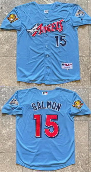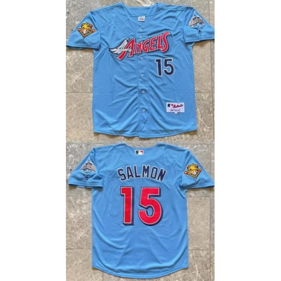 Men Los Angeles Angels 15 Tim Salmon Blue With 2001 American League Baseball Seasons 100th Anniversary Patch Stitched Baseball Jersey