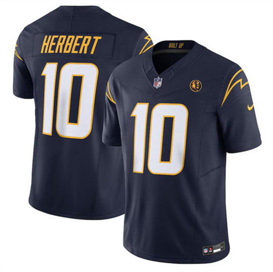 Home>NFL>Los Angeles Chargers>Men>Men Los Angeles Chargers 10 Justin Herbert Navy 2023 F U S E With John Madden Patch Vapor Limited Stitched Football Jersey
