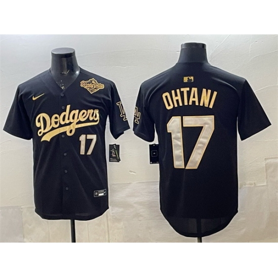 Home>MLB>Los Angeles Dodgers>Men>Men Los Angeles Dodgers 17 Shohei Ohtani Black Gold 2025 World Series Patch Limited Stitched Baseball Jersey