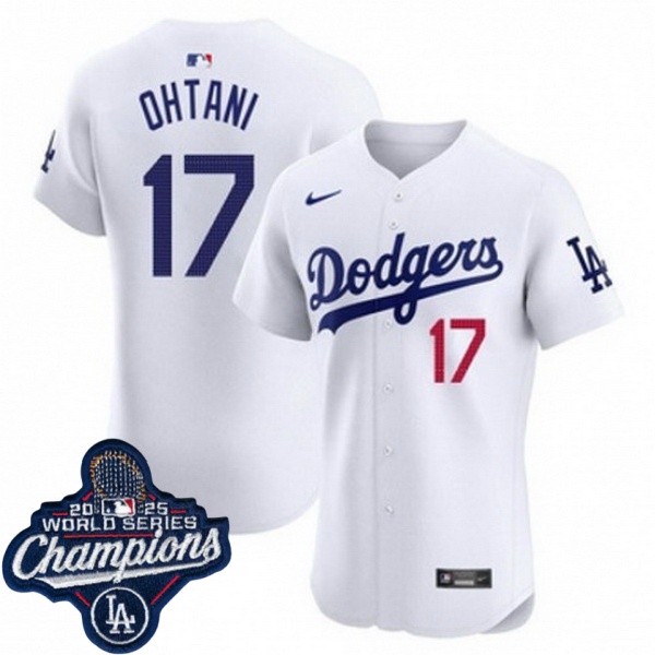 Men Los Angeles Dodgers 17 Shohei Ohtani Cool Base 2025 World Champions Stitched Baseball Jersey White
