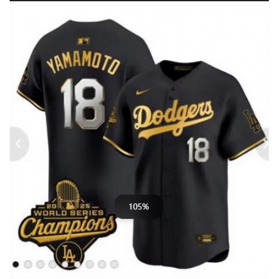 Home>MLB>Los Angeles Dodgers>Men>Men Los Angeles Dodgers 18 Yoshinobu Yamamoto Black 2025 World Series Champions Patch Cool Base Stitched Baseball Jersey