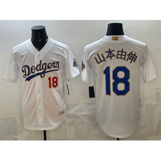 Home>MLB>Los Angeles Dodgers>Men>Men Los Angeles Dodgers 18 Yoshinobu Yamamoto White 2026 Gold Collection Stadium Stitched Baseball Jerseys