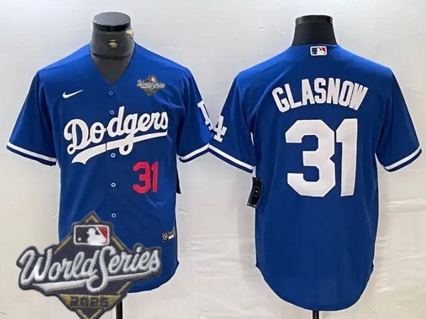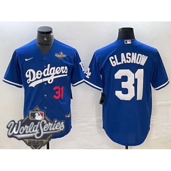 Men Los Angeles Dodgers 31 Tyler Glasnow 2025 World Series Cool Base Stitched Baseball Jersey Blue