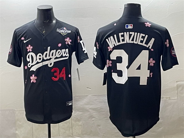 Home>MLB>Los Angeles Dodgers>Men>Men Los Angeles Dodgers 34 Fernando Valenzuela Black 2025 World Series Patch Tokyo Series Limited Stitched Baseball Jersey