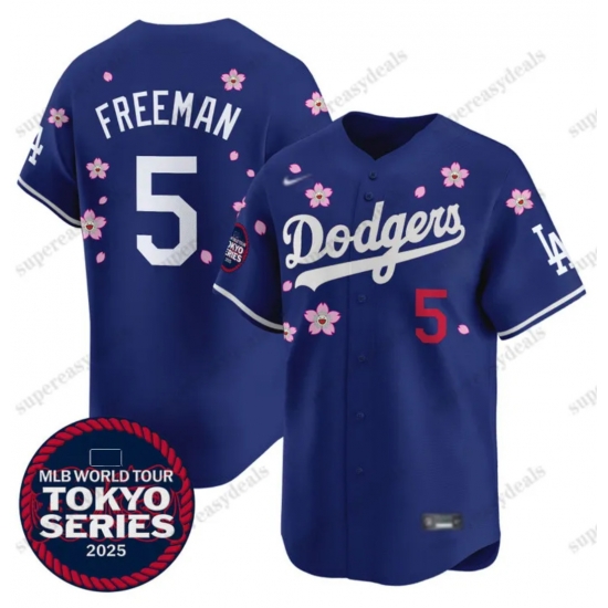 Men Los Angeles Dodgers 5 Freddie Freeman Blue 2025 Tokyo Series Limited Stitched Baseball Jersey